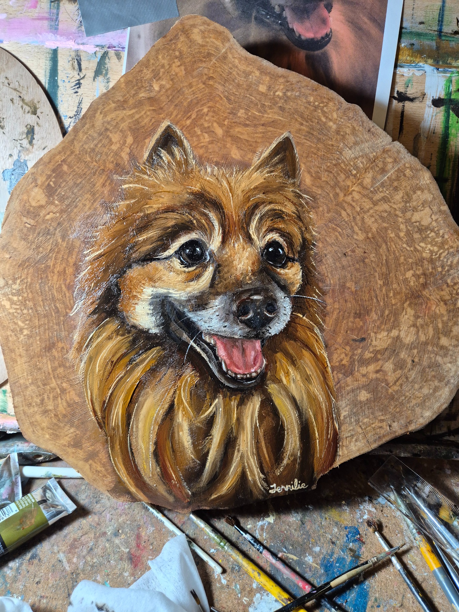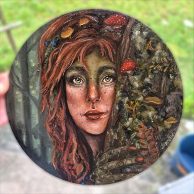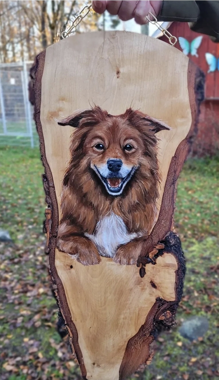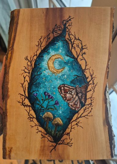 Hos mig finner du både målningar på canvas, trä, smycken och trähantverk.